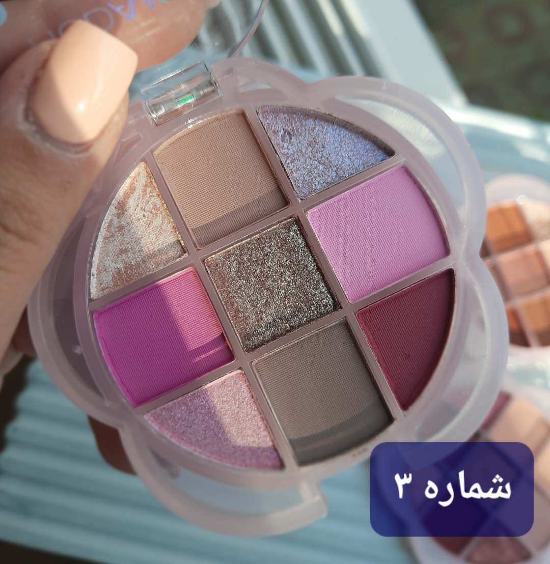 پالت سایه ۹ رنگ پیگمنت بالا رنگبندی کاربردی مناسب استفاده روزانه و مجالس بدون ریزش زیر چشم کیفیت عالی و درجه ۱ ماندگاری بالا دارای رنگ های مات و شاینی